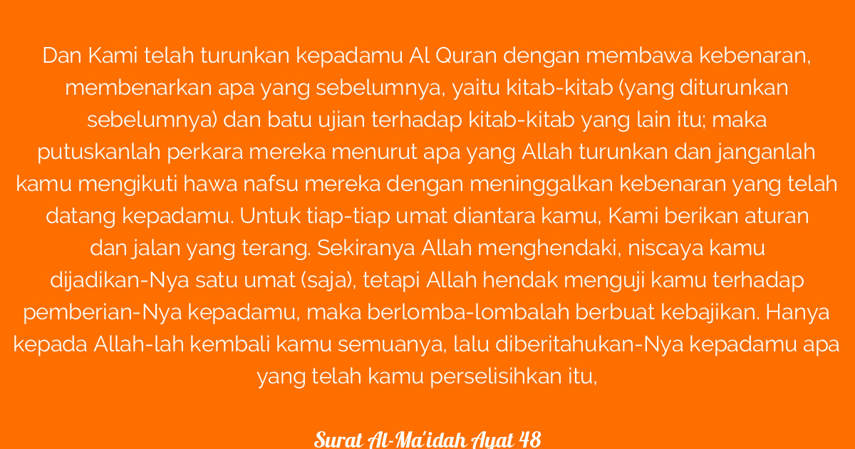 Surat Al Maidah Ayat 48 / Surah Al Maidah Ayat 48 Beserta Artinya - Gbodhi / Sehingga allah mengutus para nabi untuk memberi petunjuk kepada manusia agar berjalan pada jalan yang benar.